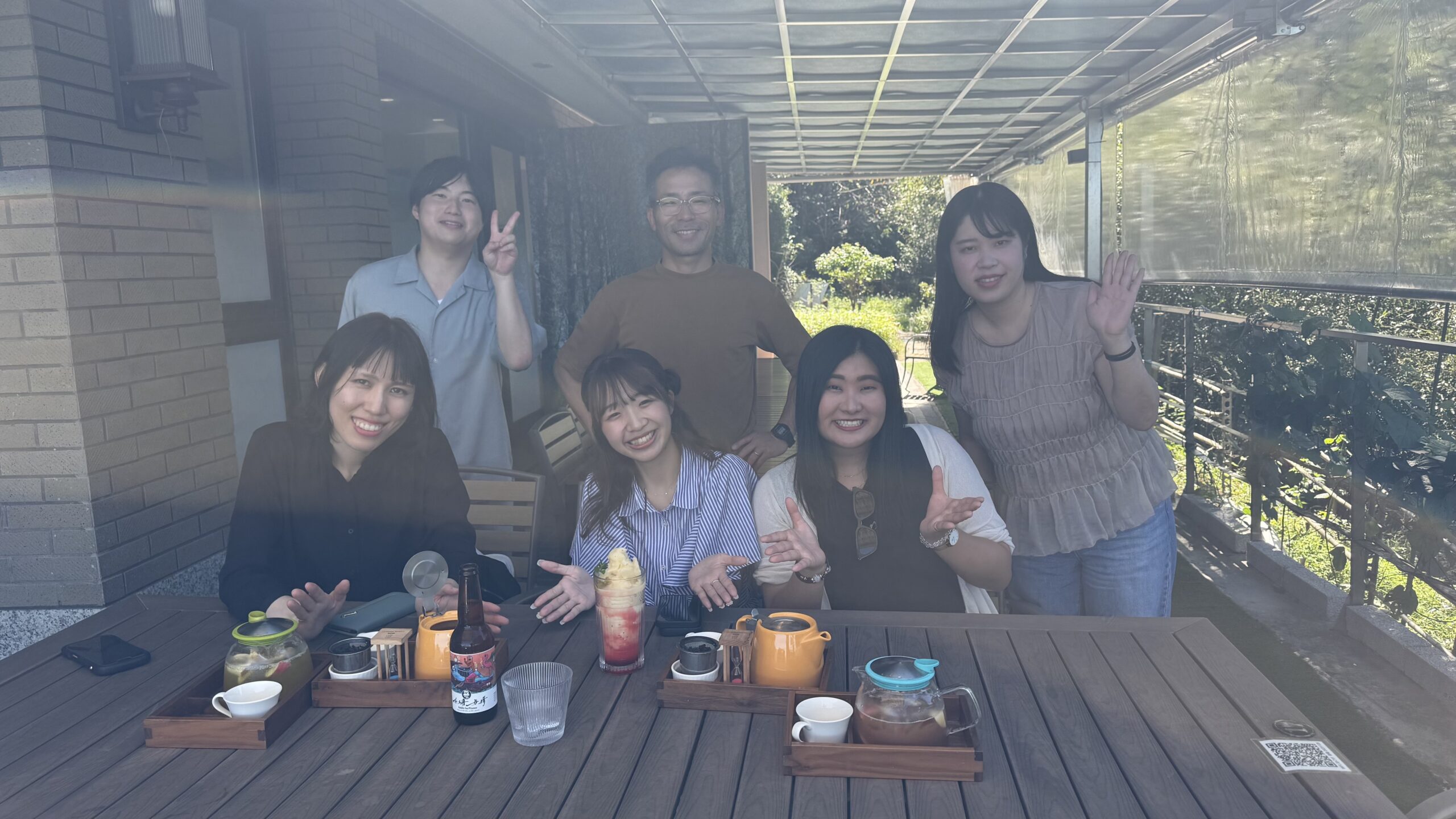緑に囲まれたテラス席で台湾茶を楽しむグループも!